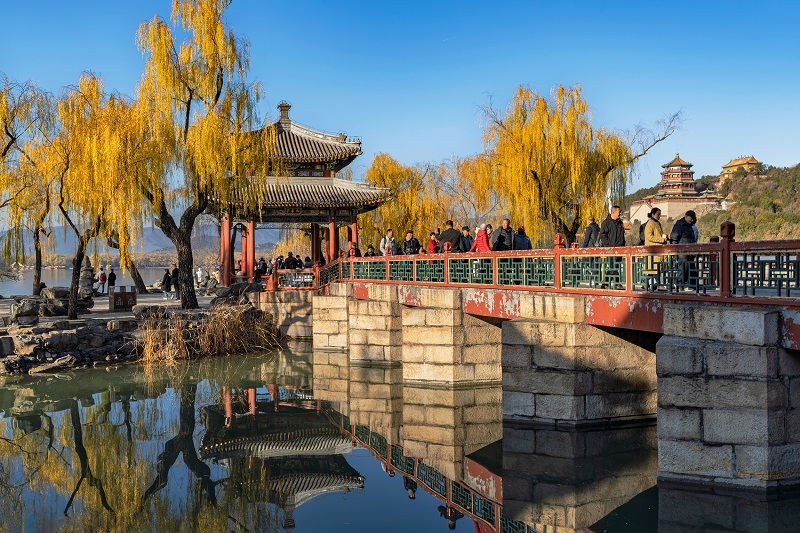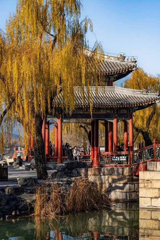 当冬日的夕阳温柔地照在颐和园的每一寸土地上,那原本雄伟壮观的建筑仿佛都被镀上了一层金色的光辉,显得更加庄重。这座承载着千年皇家气韵与历史沧桑的园林,绽放出独属于冬日的华彩。