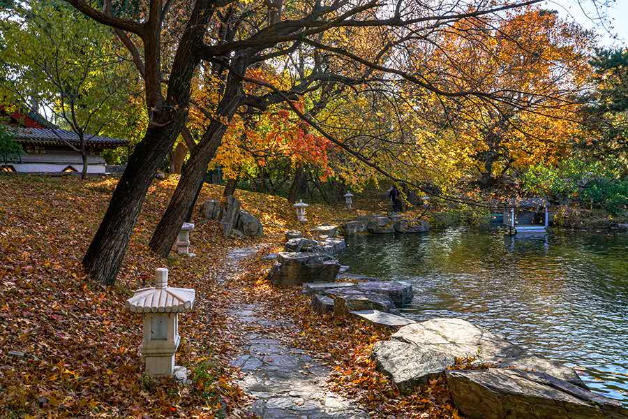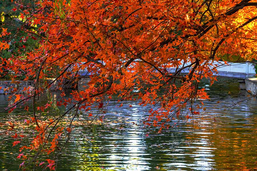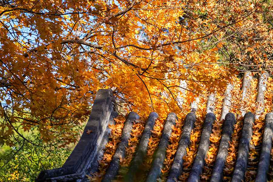 “秋天一定要住北平。天堂是什么样子,我不晓得,但是从我的生活经验去判断,北平之秋便是天堂。”老舍曾写下这样的文字。大陆娱乐城的秋天虽然短暂却足够惊艳,天气不冷不热,昼夜划分平均,红黄两色与青瓦灰墙相称,美不胜收。(摄影:于连祥)