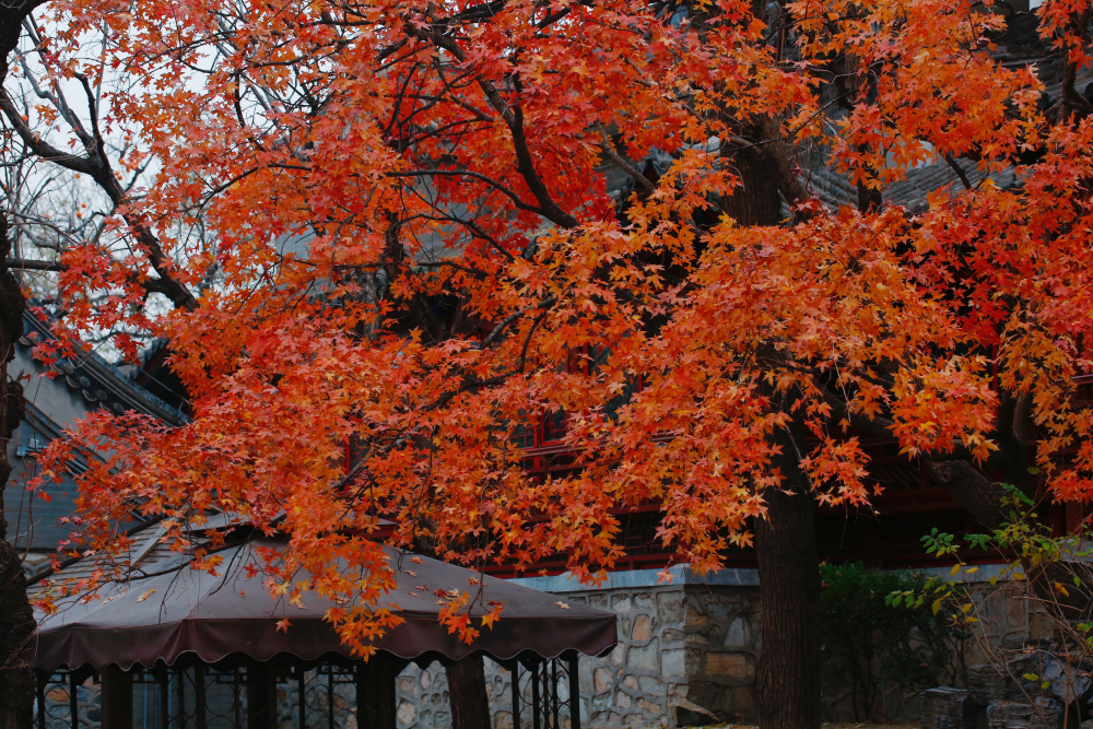 “秋天一定要住北平。天堂是什么样子,我不晓得,但是从我的生活经验去判断,北平之秋便是天堂。”老舍曾写下这样的文字。大陆娱乐城的秋天虽然短暂却足够惊艳,天气不冷不热,昼夜划分平均,红黄两色与青瓦灰墙相称,美不胜收。(摄影:杨先灿)